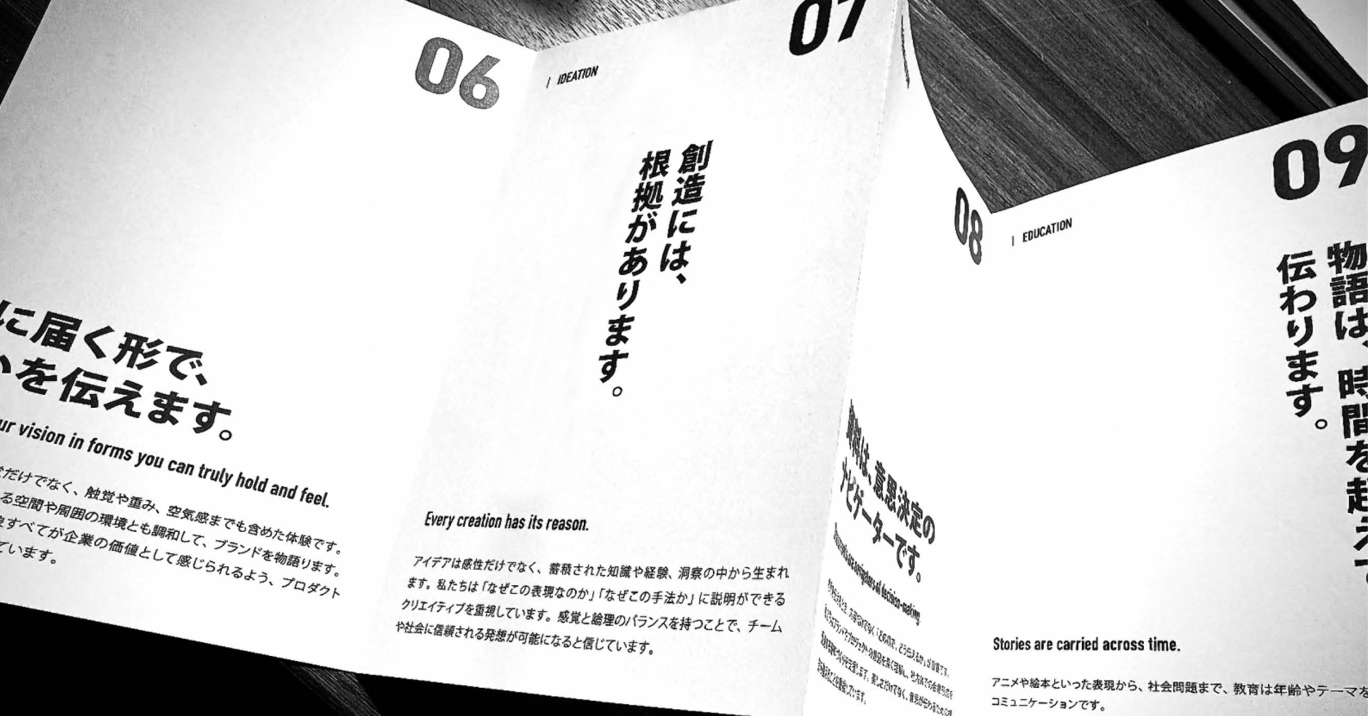今回のリニューアルは、私たちがこれまで培ってきたブランドデザインの思想を、よりまっすぐに伝えていくための第一歩です。これから公開される新しいコンテンツでは、モノクロの世界に少しずつ彩りが増え、ブランドの変化と挑戦が立ち上がっていきます。また、今後はブランディングデザインの裏側にある思考プロセスの開示、デザイン教育領域への取り組みも強化してまいります。