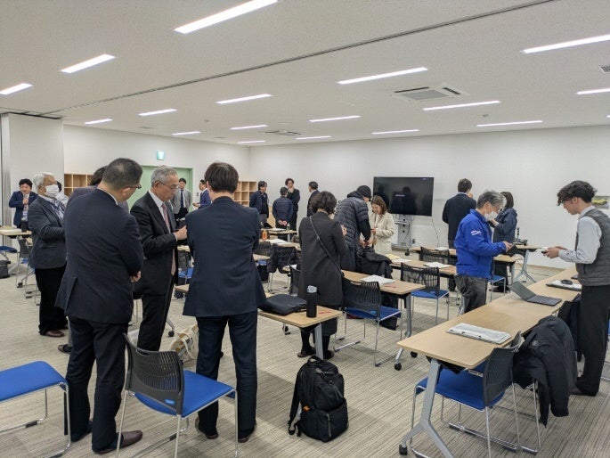 参加事業者は、研究内容や今後の展開について理解を深めるとともに、自社の事業分野との接点や今後の関わり方について関心を寄せていました。その後の名刺交換の時間では、F-REI 職員と参加事業者が直接交流し、今後の連携を見据えた関係づくりが図られました。
