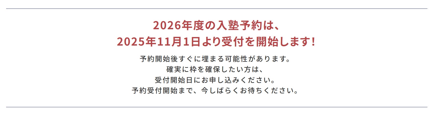 今回新たに設ける「プレミア優先枠」は、2026年2月の新年度授業開始に向けて、席を確実に確保できる仕組みです。