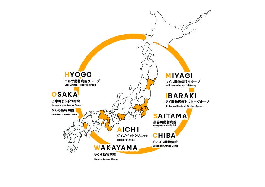 今回のP&Vの参画により、 JPACおよびANCHORSを傘下に有するホールディングスを中心としたグループは、全国13都道府県において、41施設(40動物病院・1検査施設)を展開する動物病院グループとなりました。