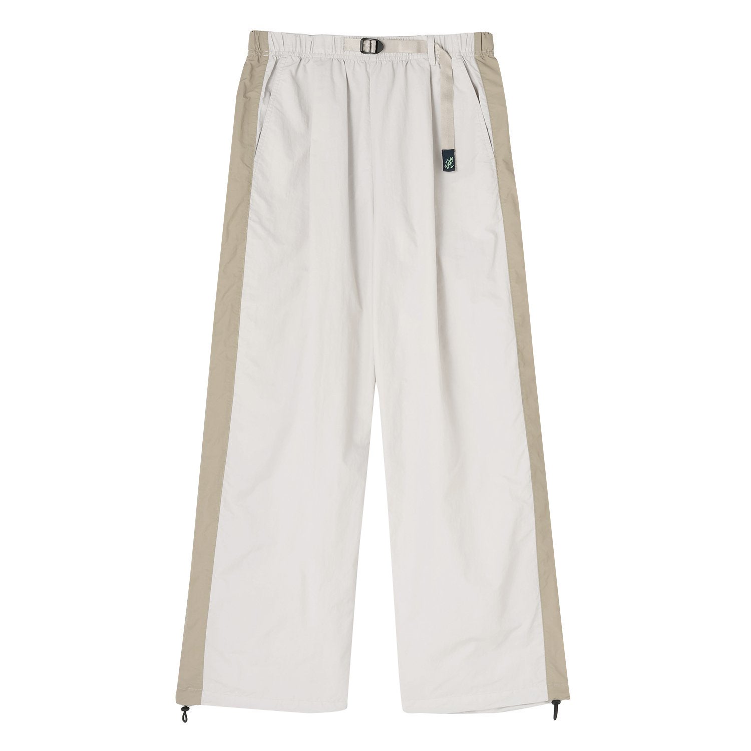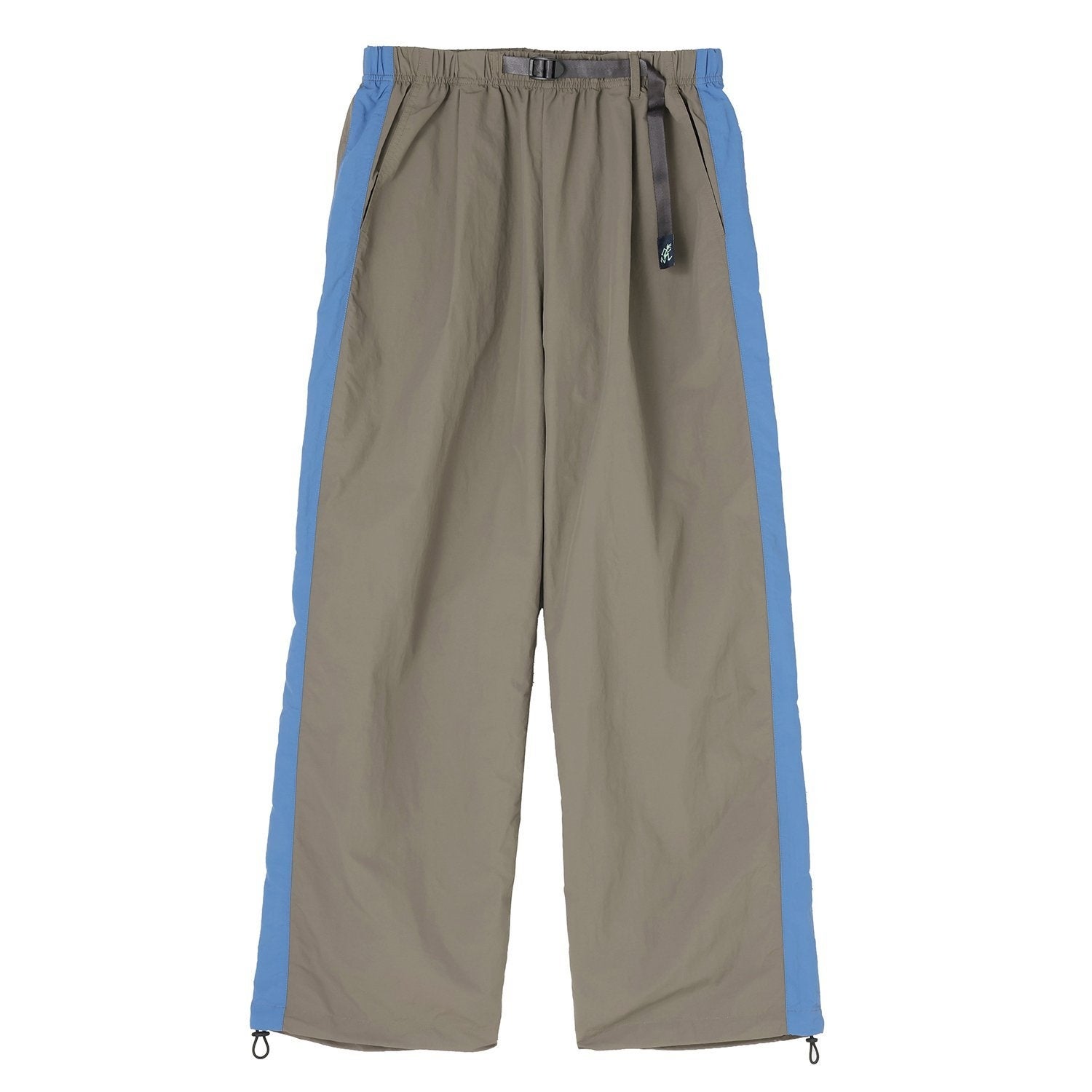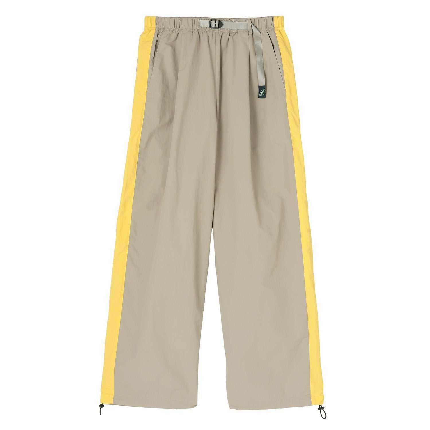 Gramicci定番のDURABLE NYLON素材を使用し、サイドに配色のラインを入れたありそうでなかったデザインで人気を博したLine Pantsの新色。オーソドックスなアイテムの多いGramicciの中で、コーディネイトのアクセントになるアイテムです。シンプルなパラシュートシルエットでトレンド感のある着こなしが決まる1本です。裾にドローコード付きなのでシルエットの変化も楽しめます。今シーズンは2トーン配色に加え、単色もラインナップし、単色はステッチカラーを微配色にしたデザインです。