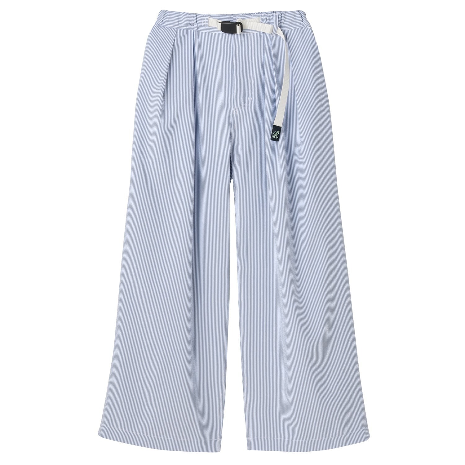猛暑日の増えた春夏シーズンに向けて見た目も着心地も涼しげなシアサッカー素材を採用。清涼感のあるブルーストライプや爽やかなホワイトを含めた計4色を展開。シルエットはもともと実績のある「OJ TC CHINO PANTS」をベースに、ワイドシルエットに加えドレープ感のある生地でスカートのような風通しの良さに仕上がっています。