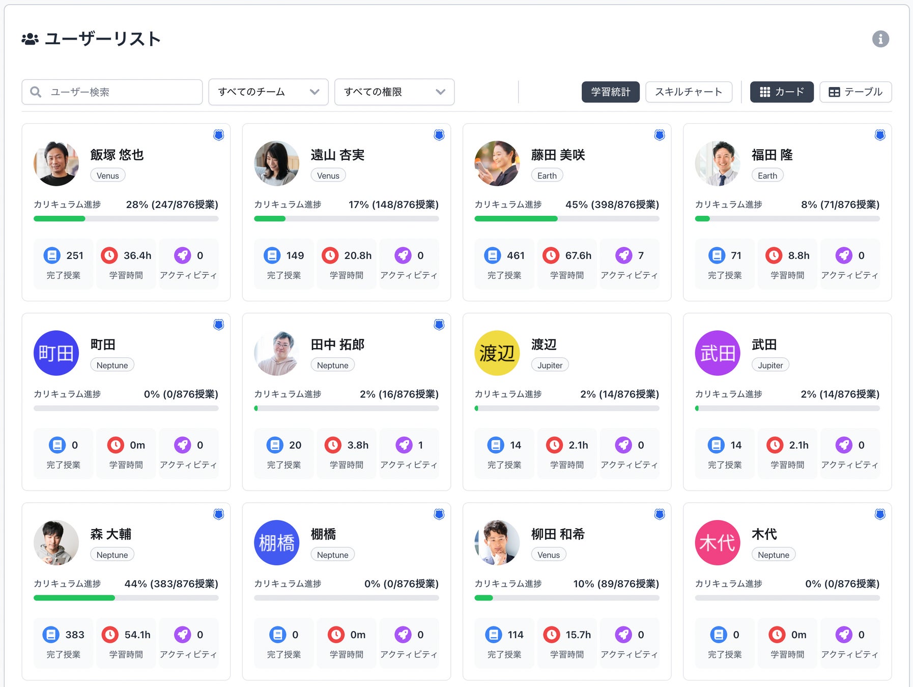 目的・部署・職種に合わせて、チーム単位で学習計画を設計。