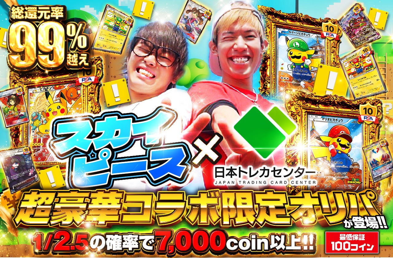 日本最大級のオンラインオリパ販売サービス「日本トレカセンター」は、大人気YouTuber兼アーティスト・スカイピース(テオくん・☆イニ☆)のお二人とのコラボレーションオリジナルパック(オリパ)を、スカイピースのメインチャンネルでの動画公開と合わせて2025年12月19日(金)20:00より販売開始いたします。