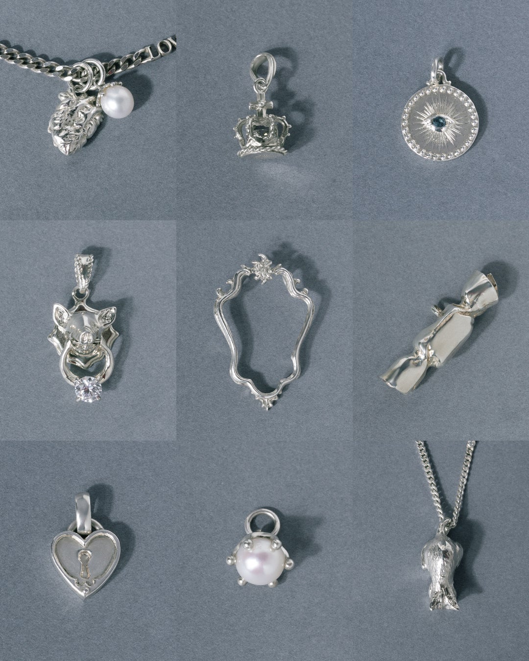 クラウンやハート、クロスやスカルなど多彩なモチーフのシルバーチャームをe.m. zozotownにて期間限定で受注販売。お気に入りのラッキーモチーフを選んで、自分だけのおまもりジュエリーに。