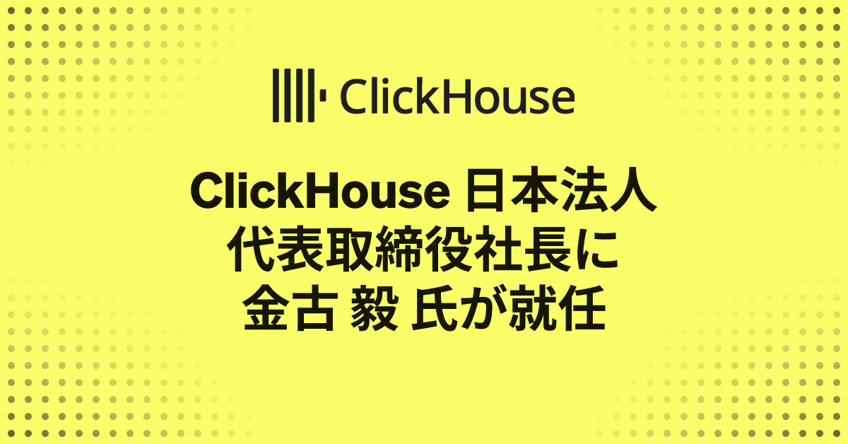 リアルタイム分析データ基盤のリーディングカンパニーであるClickHouse Inc.(CEO: Aaron Katz)の日本法人、ClickHouse株式会社(クリックハウス、本社:東京都港区)は、金古 毅(かねこ たけし)が、2026年2月1日付でClickHouse株式会社の代表取締役社長に就任したことをお知らせします。