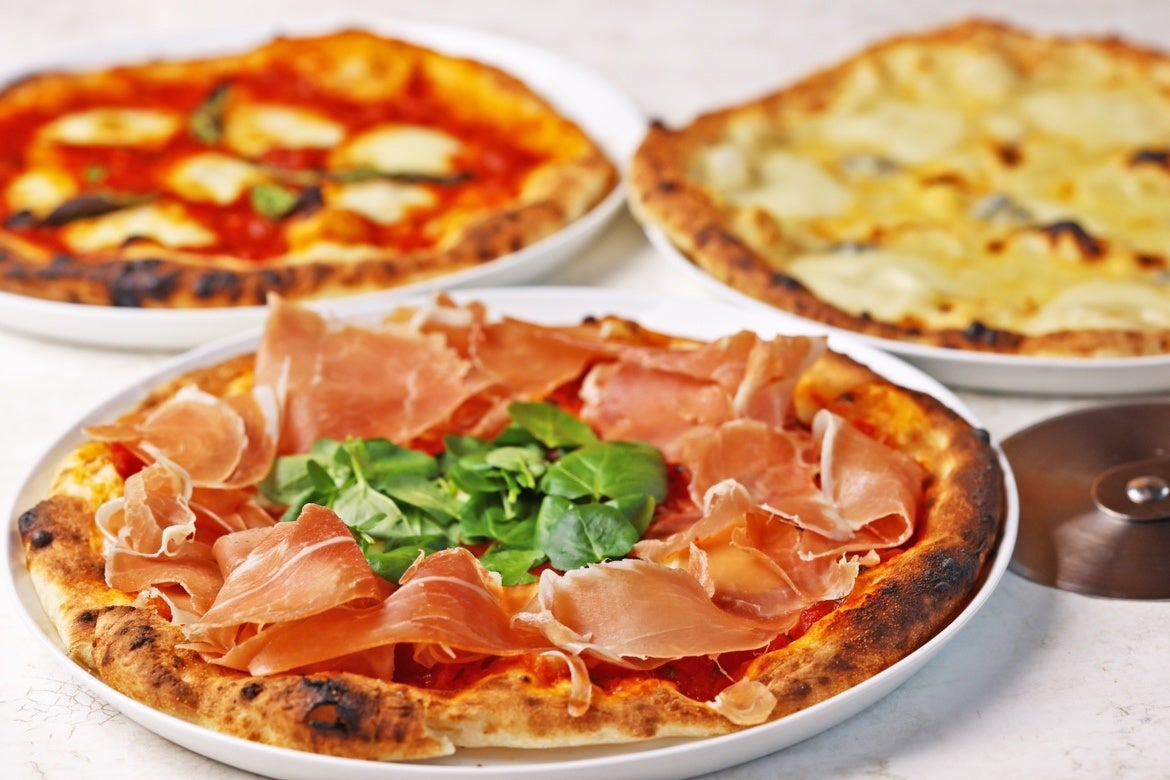 高温の窯で一気に焼き上げる、外はカリッと中はモチモチの本格ナポリピッツァ。以下の全8種類がすべて食べ放題対象です。