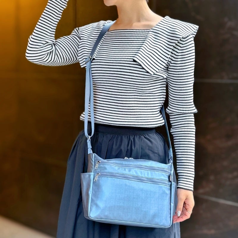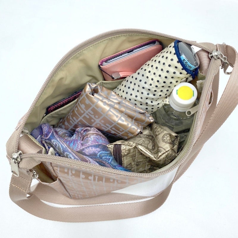 濡れてもOK容量もそこそこあり、ポケットもたくさんで旅行の時など大活躍のバッグですが、ディズニーで1日中片方の肩にかけ続けていたら疲れ、斜めがけできるバッグが欲しくなりました。