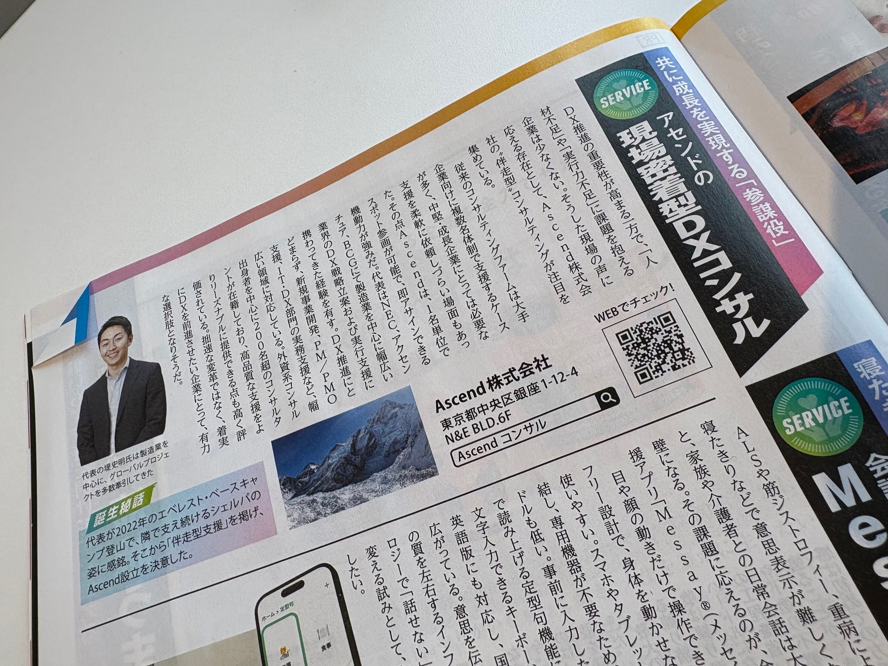 DX推進の実行支援を展開するAscend株式会社(本社:東京都中央区、代表取締役:堤 史明)は、このたび、ビジネス・トレンド誌『日経トレンディ』に、中堅・成長企業のDXを加速させる「現場密着型コンサルティング」の注目企業として紹介されましたことをお知らせいたします。