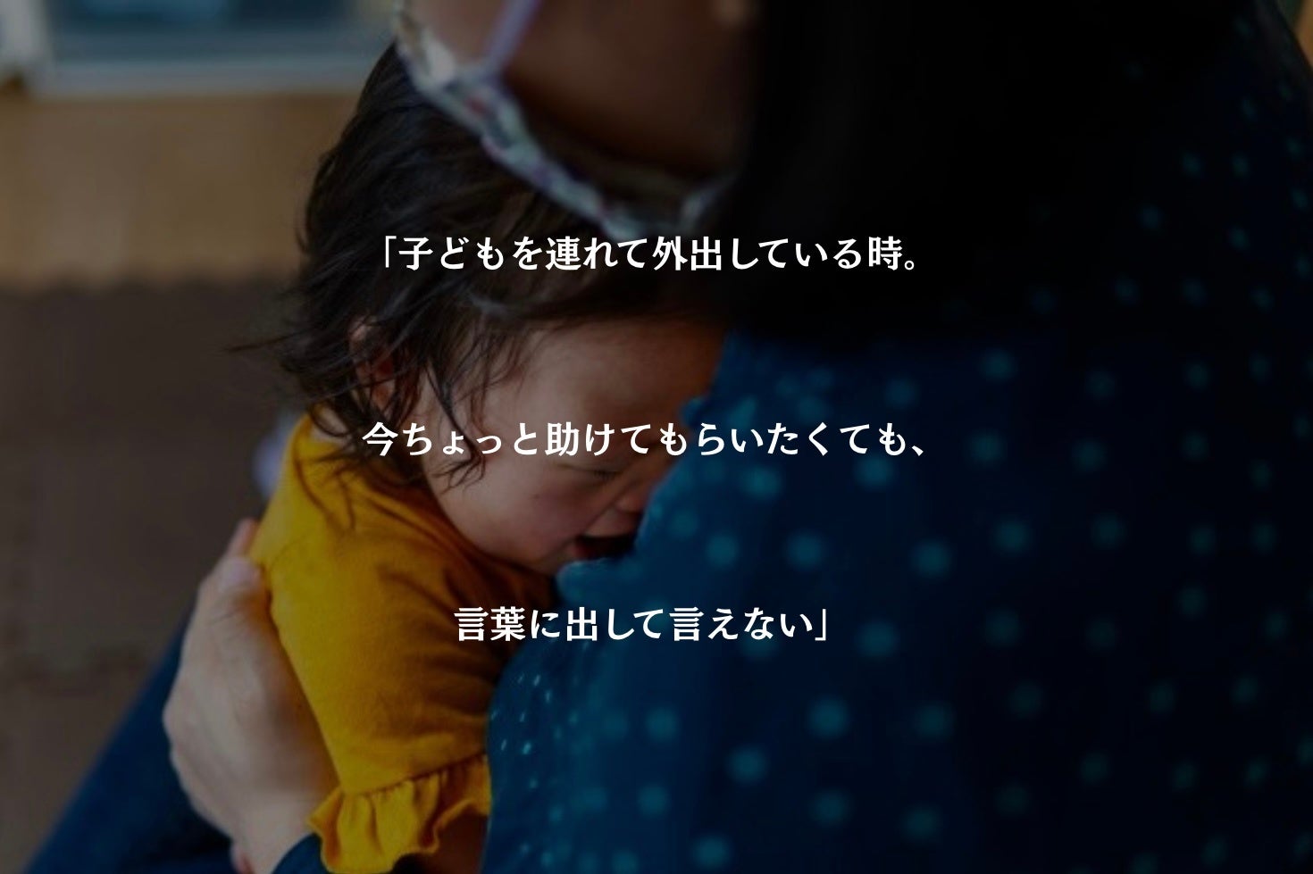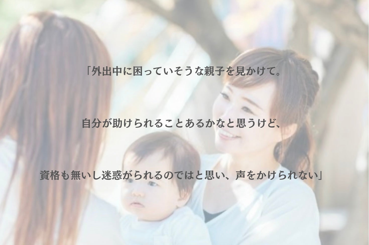 私たちは今、声を上げづらい、そして周囲も声をかけづらい、助けたくても助けづらい・・・そんな環境で子育てをしています。