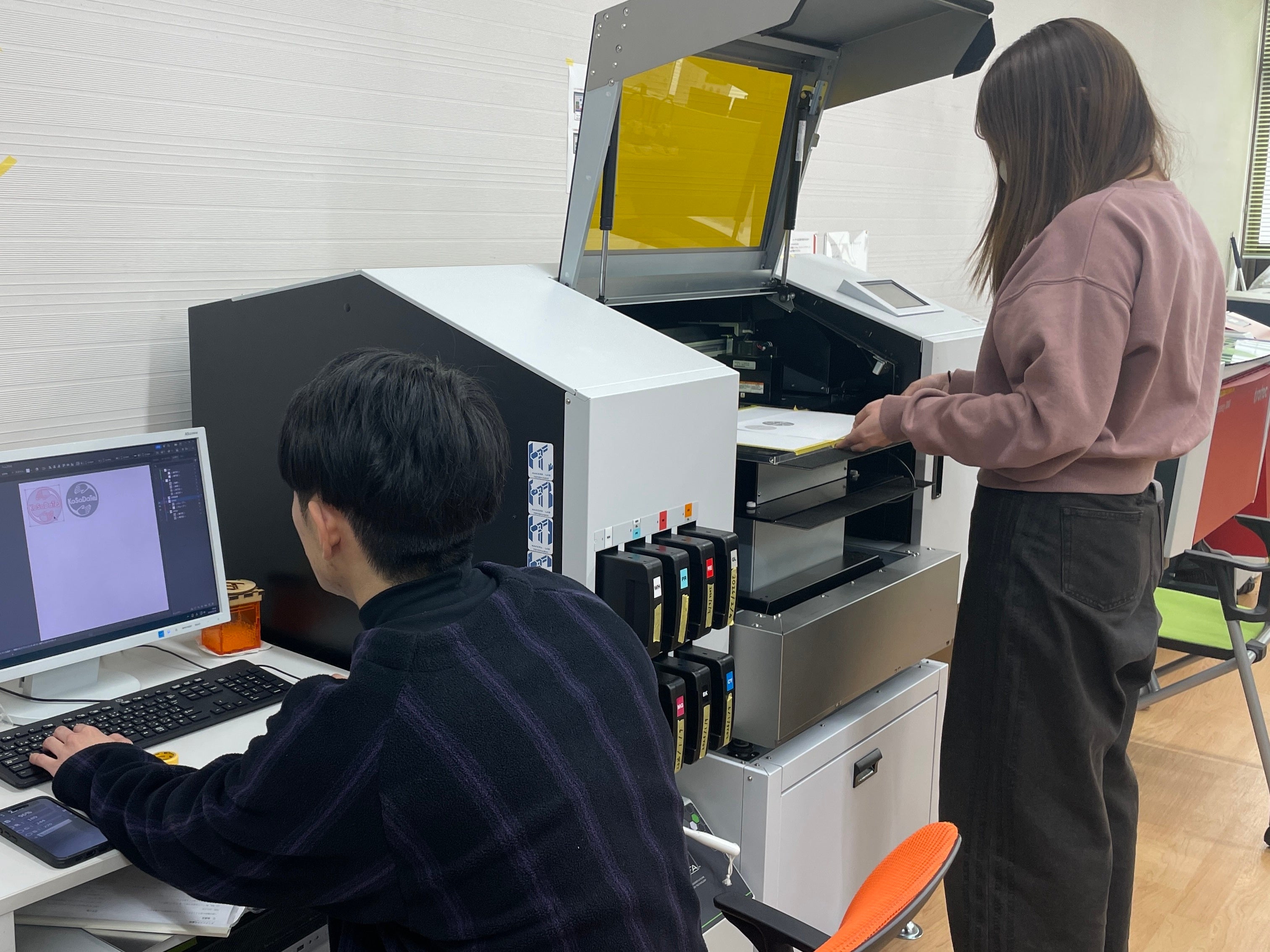制作の拠点となったのは、「メイカーズ・ラボとよはし」です。ここで、豊橋技術科学大学の学生から技術支援を受けながら、UVプリンターを駆使した試作と検証を繰り返しました。