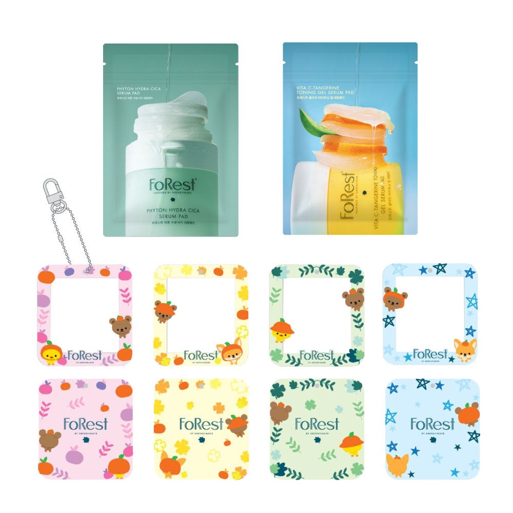 また、セラムパッド10枚入り2種類と推しの写真を入れられるフレームキーリング4種類をセットにした【FoRest by Greenfinger日本上陸1周年記念のAnniversaryセット】を発売。¥2,695(税込)