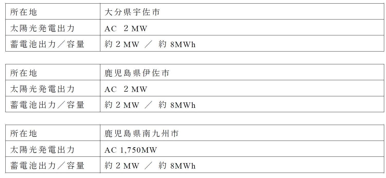 ブルースカイエナジー株式会社は、大分県および鹿児島県において、既設太陽光発電所に併設する蓄電池設備の建設工事を完了し、順次運転を開始いたしました。