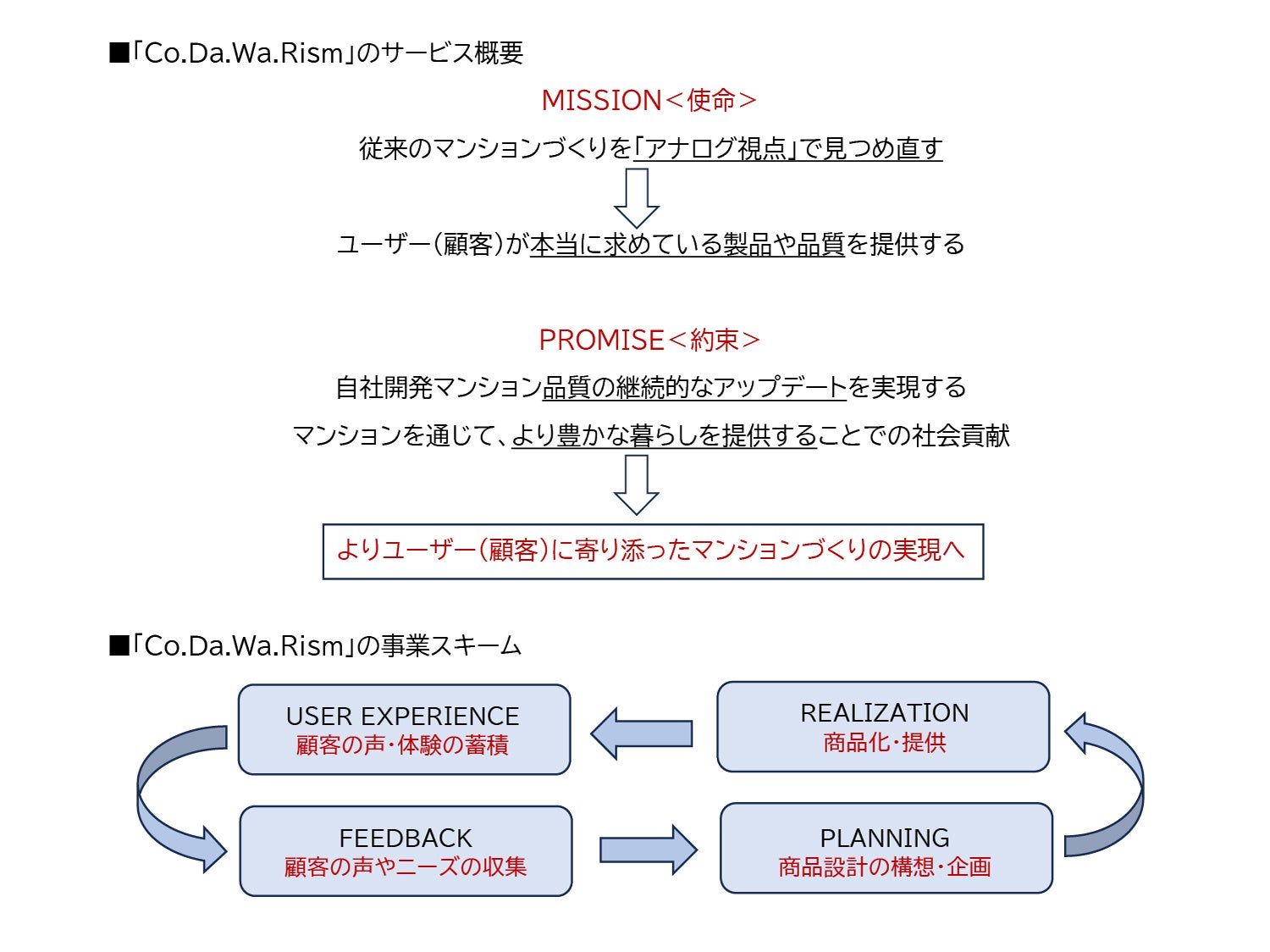 「Co.Da.Wa.Rism(こだわり住む)」はこれまで当社グループが開発分譲してまいりました自社ブランドマンション「ガーラ・レジデンス」シリーズで蓄積してきた「自由度の高い空間設計」「細部までこだわった収納」「誰もが使いやすいユニバーサルデザイン」などのノウハウをより高い水準へと昇華し、今後の商品企画に適時的確に反映させる試みとなります。