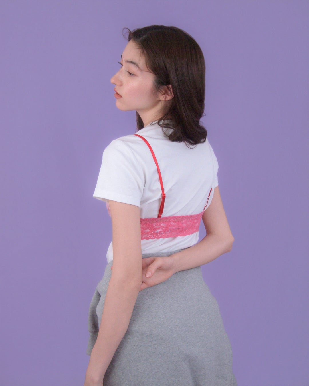 背中にフックがなく、アウターにも響きにくい仕様です。