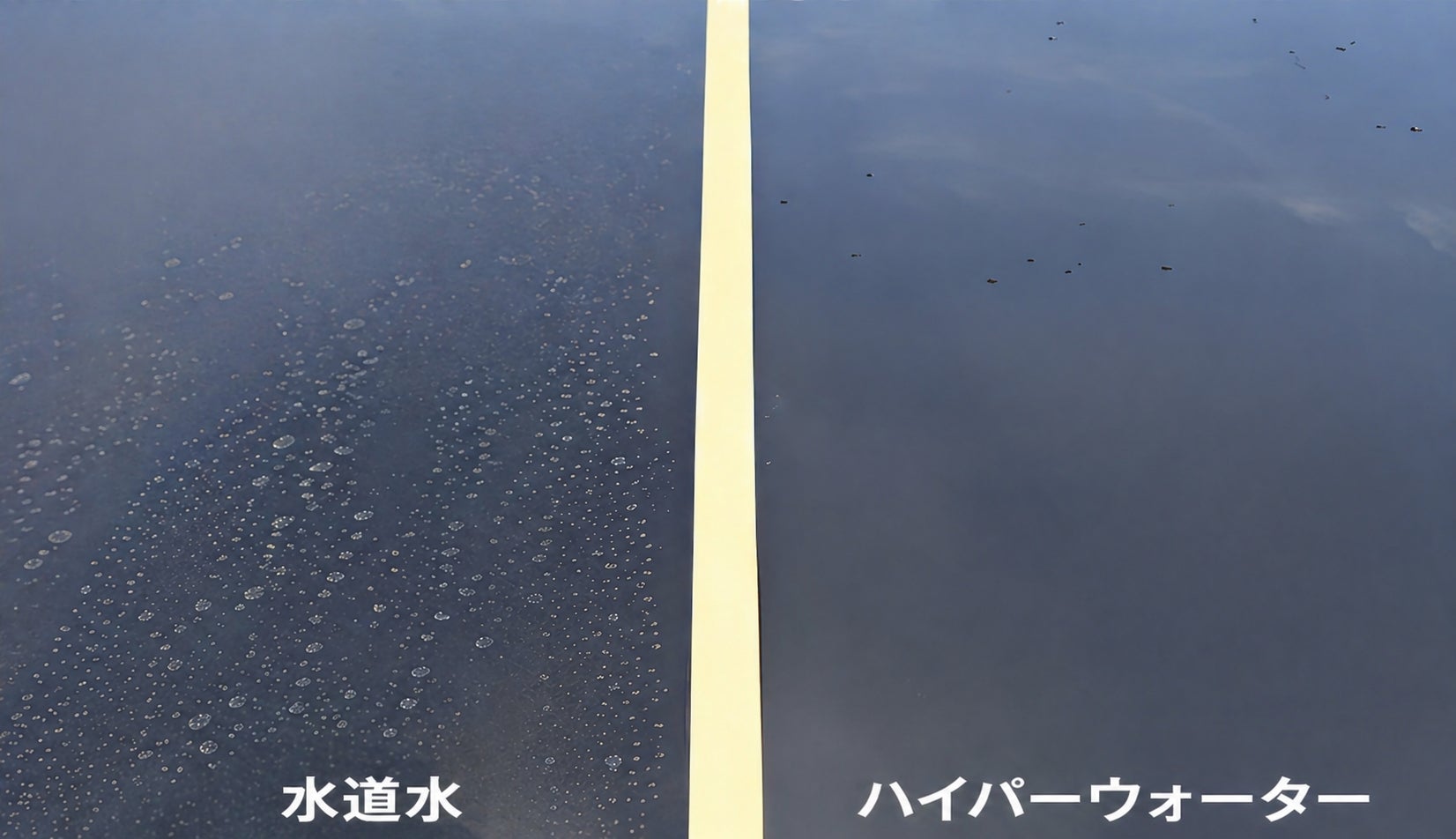 『HYPER WATER』は、不純物を極限まで除去した超純水を精製・使用することで水シミの発生を防ぎ、洗車後の拭き上げ作業を不要にする洗車専用超純水システムです。