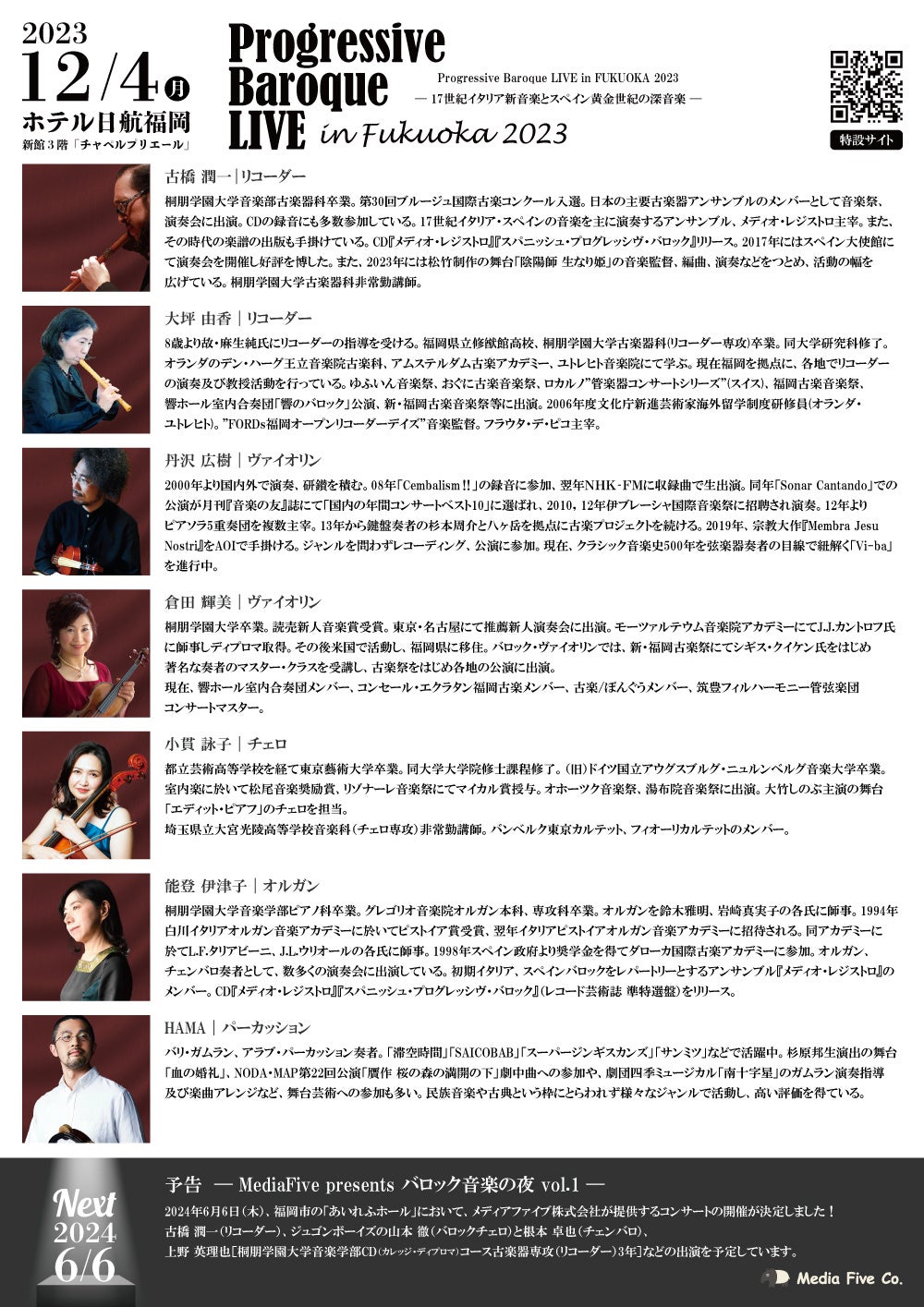 Progressive Baroque LIVE in FUKUOKA 2023 ― 17世紀イタリア新音楽とスペイン黄金世紀の深音楽―