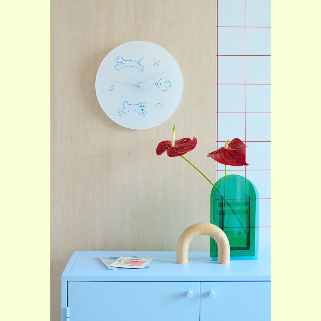 アクリル素材にプリントを施した壁掛け時計。クリ