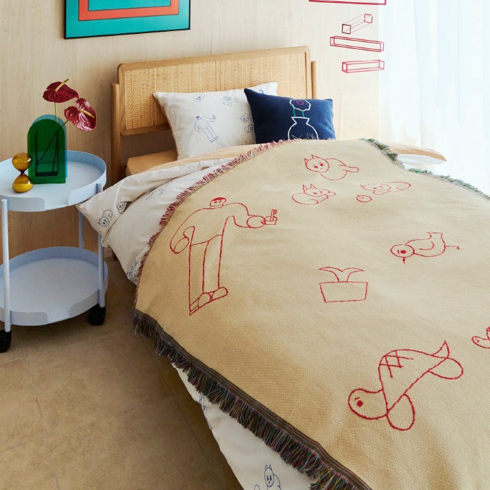 描かれたゴブラン織りのブランケット。全2色展開。