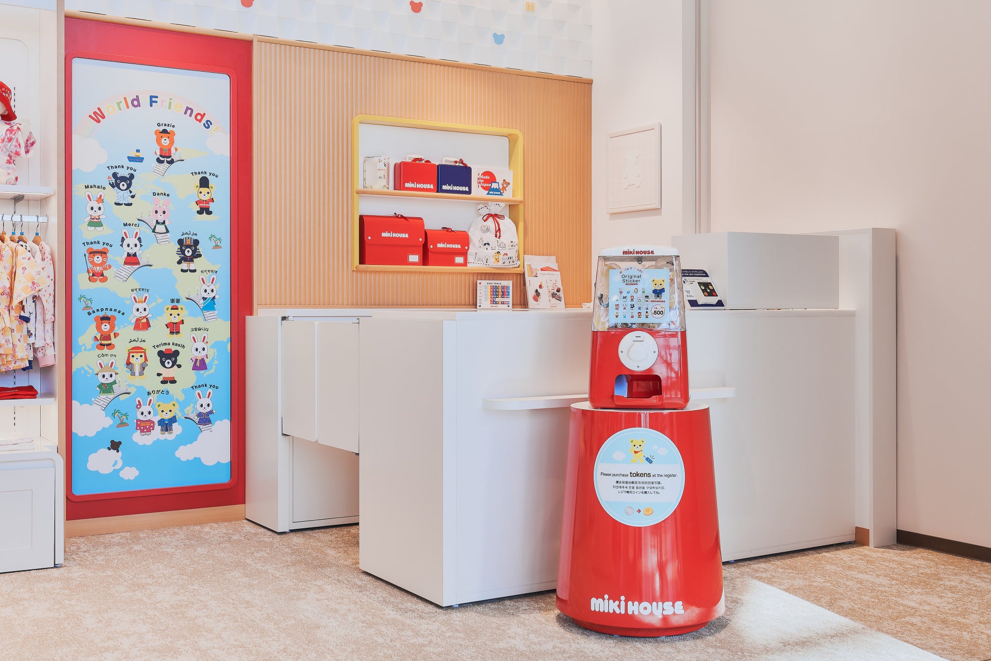 世界中のお客様が利用する国際空港免税店には、『World Friends』をテーマに、そのモチーフに扮したミキハウスのキャラクターたちが描かれたパネルでお客様をお迎えします。またお子様に楽しんでいただけるよう、ミキハウスのキャラクターのオリジナルステッカーが入ったカプセルトイも設置しています。