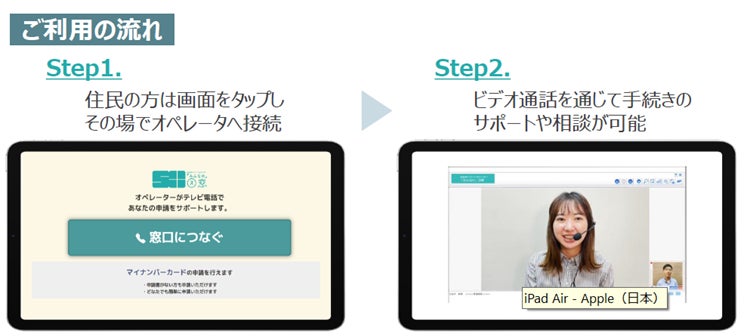 オンライン窓口では、マイナポイントの手続きを自治体の窓口等に行かずに、店舗内で事前予約不要で行うことができます。土日および平日夕方など開庁時間外でも、ビデオ通話を通じて専用オペレーターによる遠隔 支援が受けられるため、行政手続きの利便性が大きく向上し、マイナンバーカードの取得率向上が期待できます。