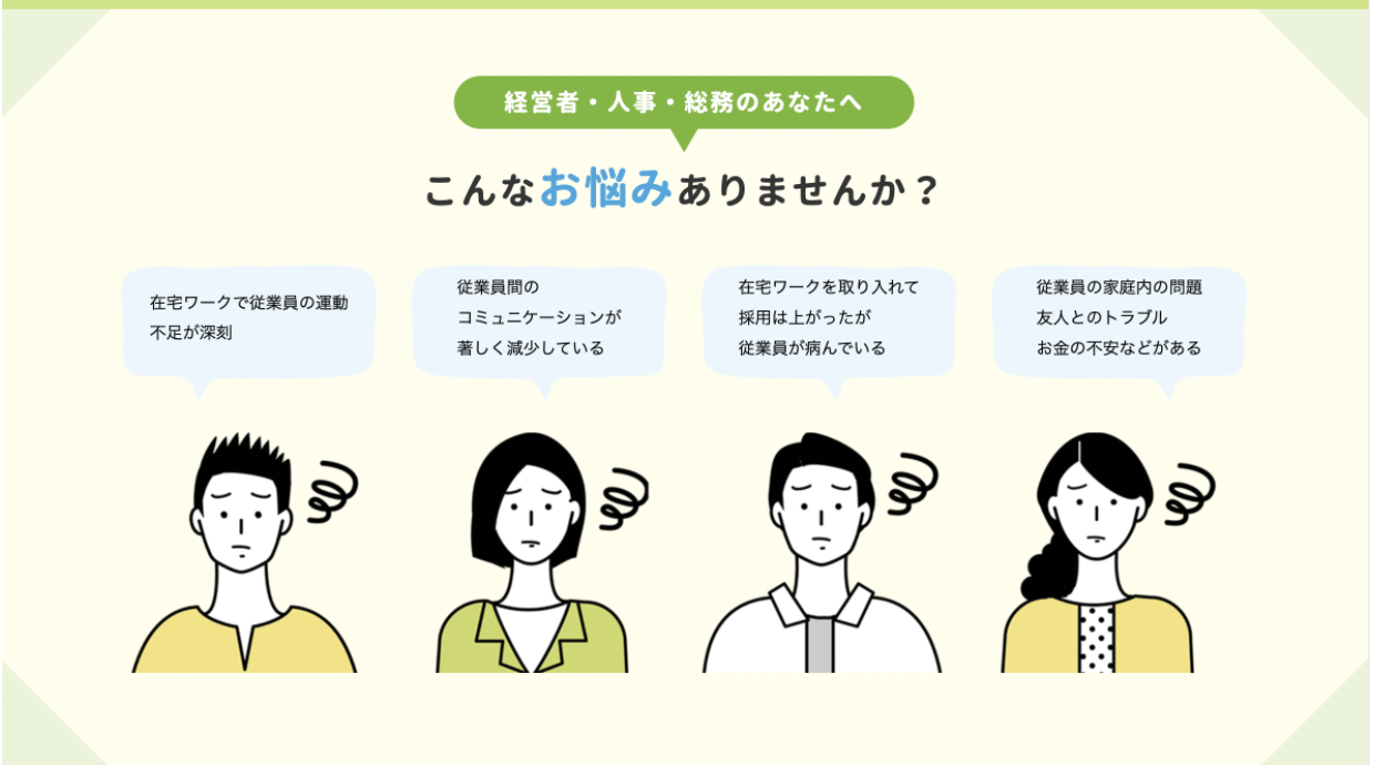 この度、従業員支援プログラム(EAP)の領域をより強化するために、Bean Bros株式会社と協業することで、下記ソリューションを実現します。
