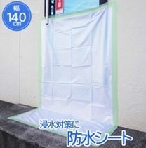 - 水害対策商品「防水シート」は、いろいろな場所で水の災害を防ぐことができます。