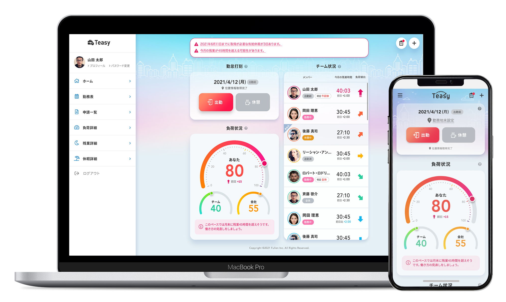 Teasy(テイジー)は、クラウド型の勤怠管理システムとして、これまでにない新たな機能を備えた勤怠管理サービスです。