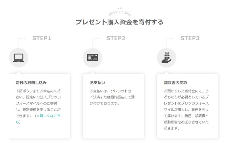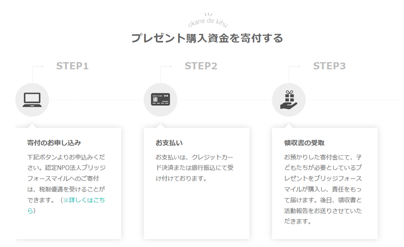■寄付の方法は2通り: 「物品を寄付」「プレゼント購入資金を寄付」