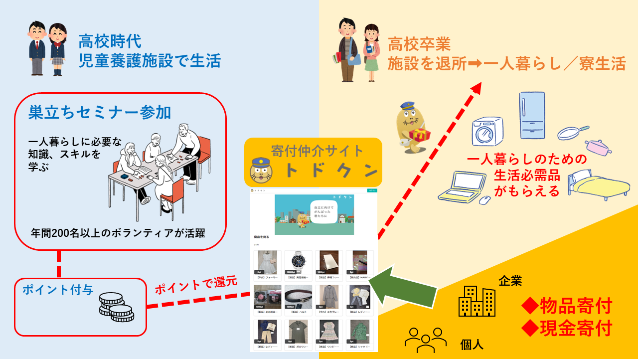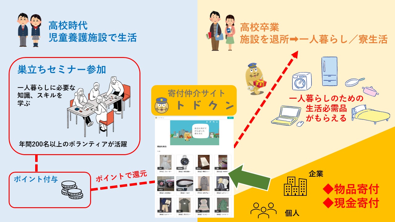アナタから児童養護施設を退所した子どもたちへ物品寄付を届けられる「トドクン」 自宅の不用品が、ケアリーバーたちの初めての一人暮らしに役立ちます!