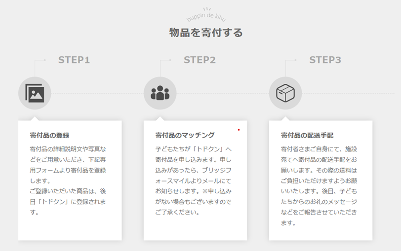 ■ブリッジフォースマイルが行う 寄付仲介サイト「トドクン」の仕組み