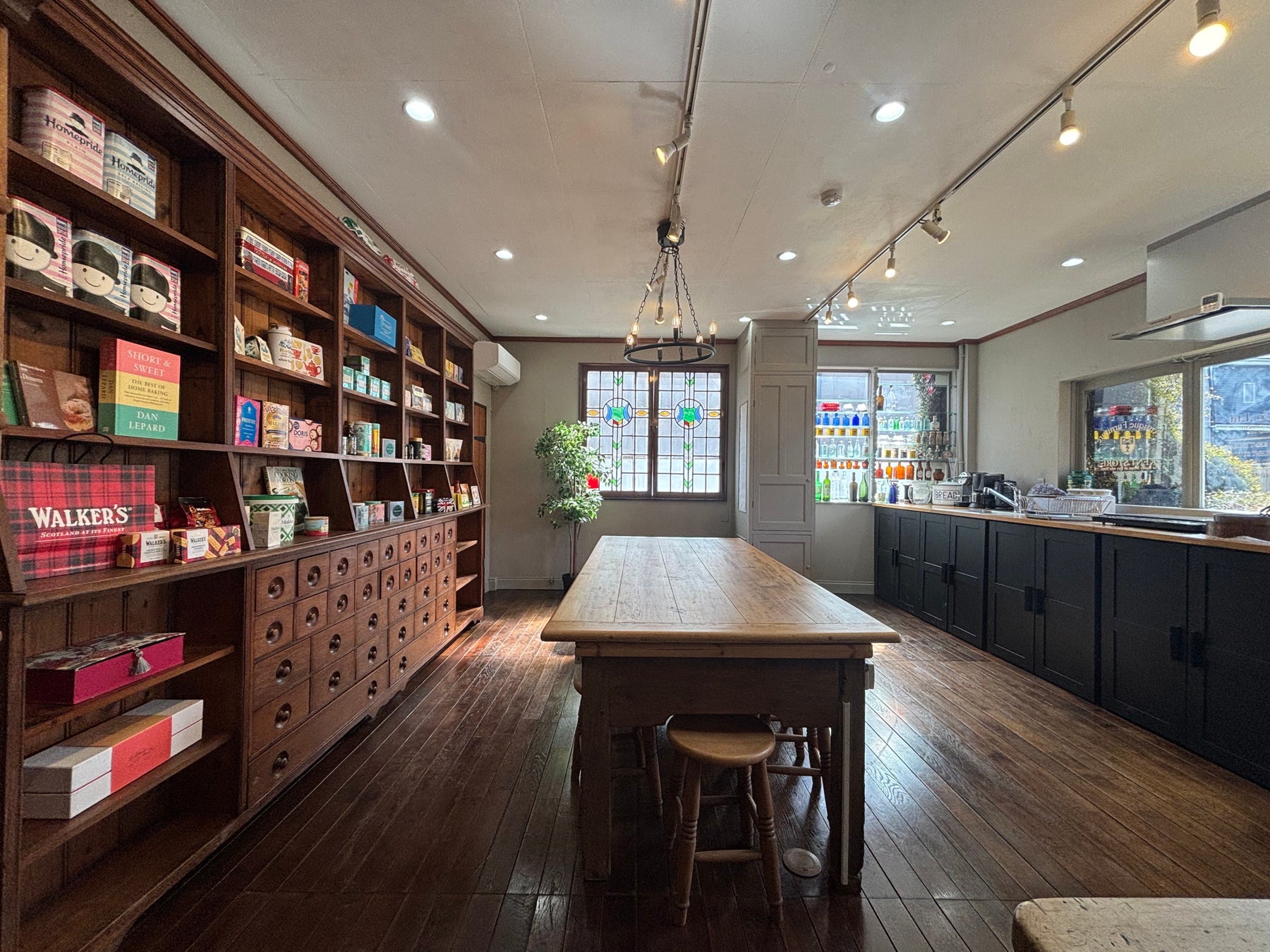 今回新たに設けられた英国式キッチンスタジオ「ケントデリ」は、憧れのイギリスのキッチンを彷彿とさせる親しみやすいアンティークの魅力と温かみのあるデザイン、さらに機能的でスタイリッシュなキッチンが融合した特別な空間です。「イギリスのお家に来たみたい!」と感じさせる空間では、イギリスの食文化やライフスタイルを体験することができます。さらに、料理教室やセミナーのほか、パーティーや撮影などのレンタルスペースとして、またママ会など仲間同士のお茶会にもお気軽にご利用いただけます。アンティークボトルが並ぶ窓際やユニークなドアノブなど、アンティークを日常生活に取り入れたくなるアンティークショップならではのプロのアイデアが満載です。