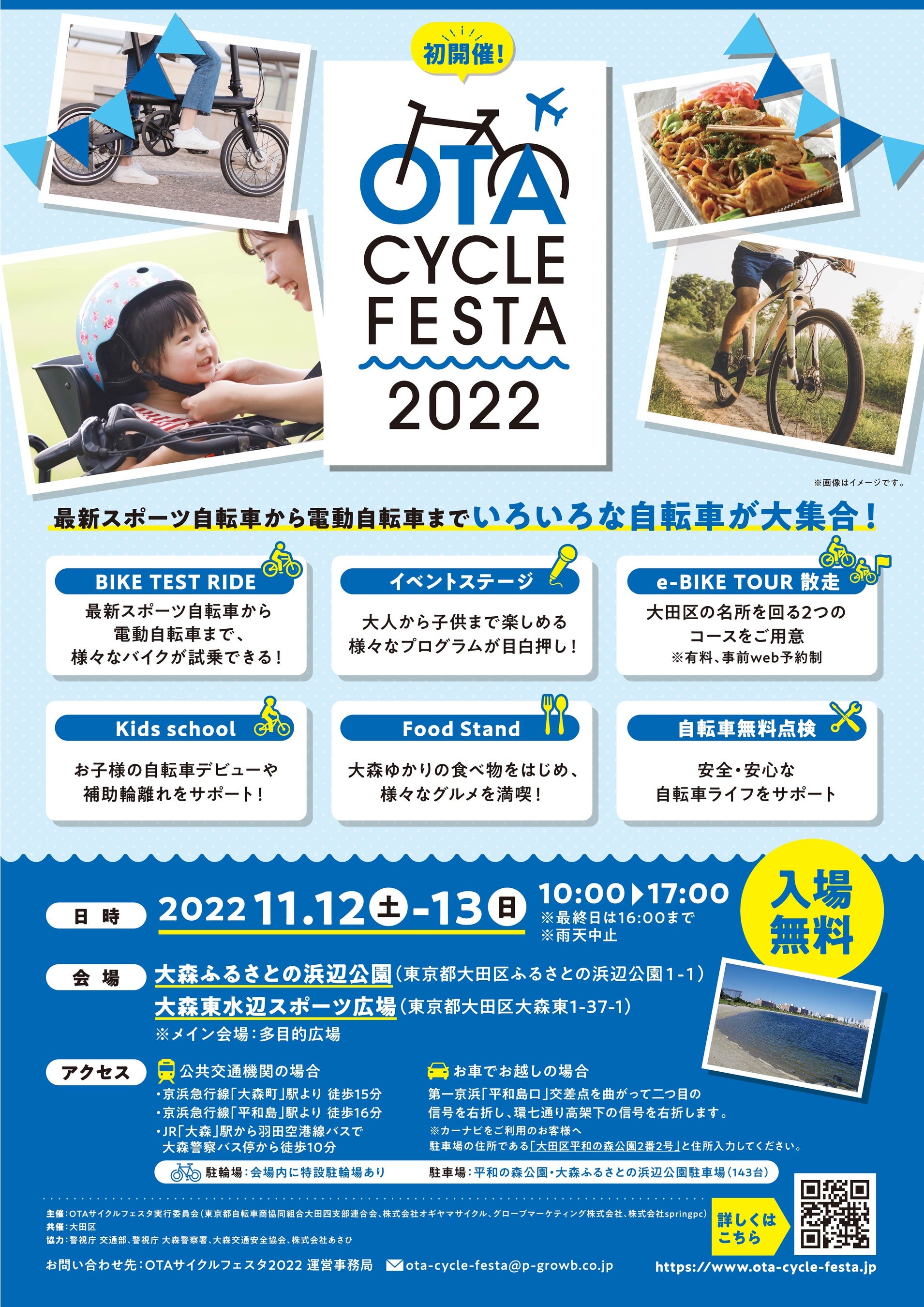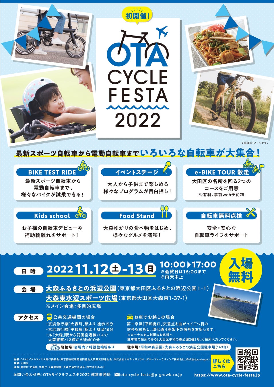 OTAサイクルフェスタ実行委員会は大田区と共催で区内の自転車イベントとして最大規模となる「OTAサイクルフェスタ2022」を2022年11月12日(土)、13日(日)の2日間(雨天中止)にわたって、初めて開催します。