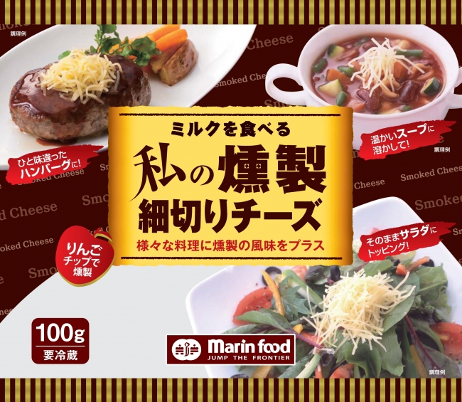 「ミルクを食べる 私の燻製細切りチーズ」は、マリンフードが展開する「私のシリーズ」の新製品です。今年の発売開始以降大好評を頂いている「ミルクを食べる乳酪 私の燻製バター」に続く、第2弾となる燻製風味の製品です。マイルドでコクのあるチーズを、りんごチップとピート(泥炭)で燻製しています。