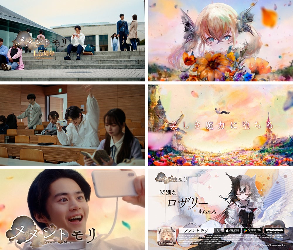 株式会社バンク・オブ・イノベーション(本社:東京都新宿区、代表取締役社長:樋口智裕、以下BOI))は、350万ダウンロード突破のスマートフォン・PC向けRPG『メメントモリ』が、リリースから1.5周年を記念し、俳優でモデルの鈴鹿央士さんを起用した新CM「メメントモリ/美しき魔力に堕ちる篇」(15 秒/30秒)を、 4月 27 日(土)より全国地上波で放映することをお知らせいたします。