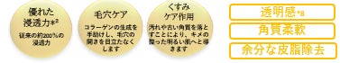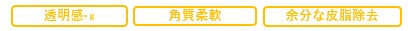 *1気になる部分に集中的に使用*2角質層まで*3超高圧加工処理装置を用いた原料*4乾燥により開いた毛穴*5汚れや古い角質による*6乾燥してキメが乱れた肌印象のこと*7超高圧処理したテトラヘキシルデカン酸アスコルビル(保湿)*8古い角質や汚れを落とすことによる*9年齢に応じたケアのこと*10超高圧処理したバクチオール(保湿)*11パパイン、リパーゼ、プロテアーゼ(洗浄成分)*12炭酸水素Na(洗浄成分)