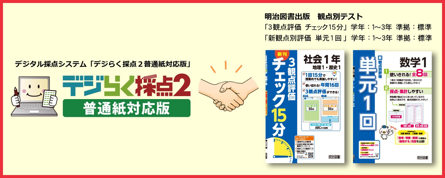 デジタル採点システム『デジらく採点2普通紙対応版』、明治図書出版の中学校学習教材「観点別テスト」と連携し提供開始