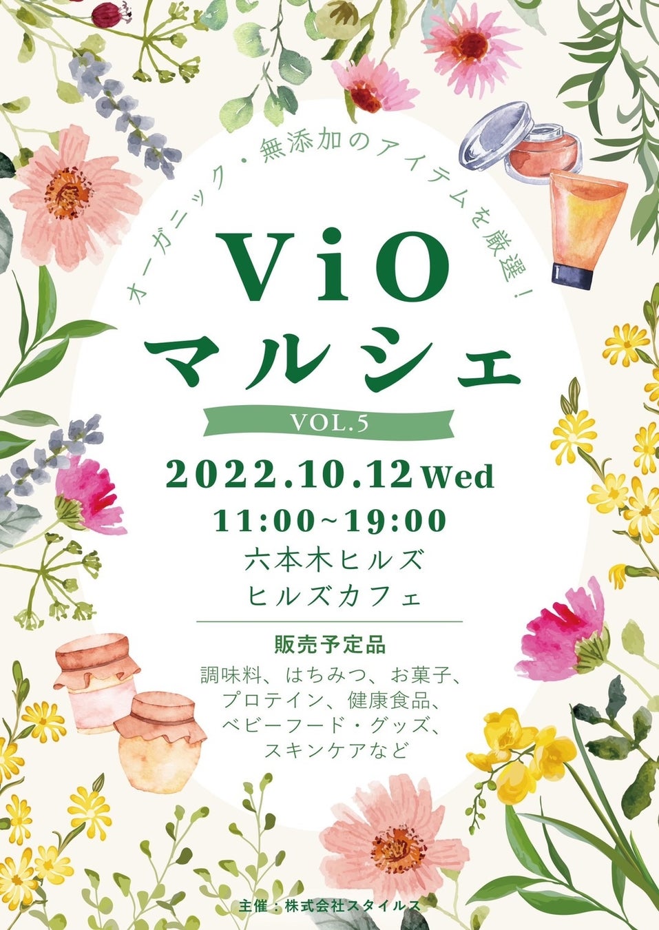 スタイルスが厳選したオーガニック・無添加商品の製造・販売者を一堂に集めた「ViOマルシェ」、10月12日六本木ヒルズにて開始!出展者募集中!