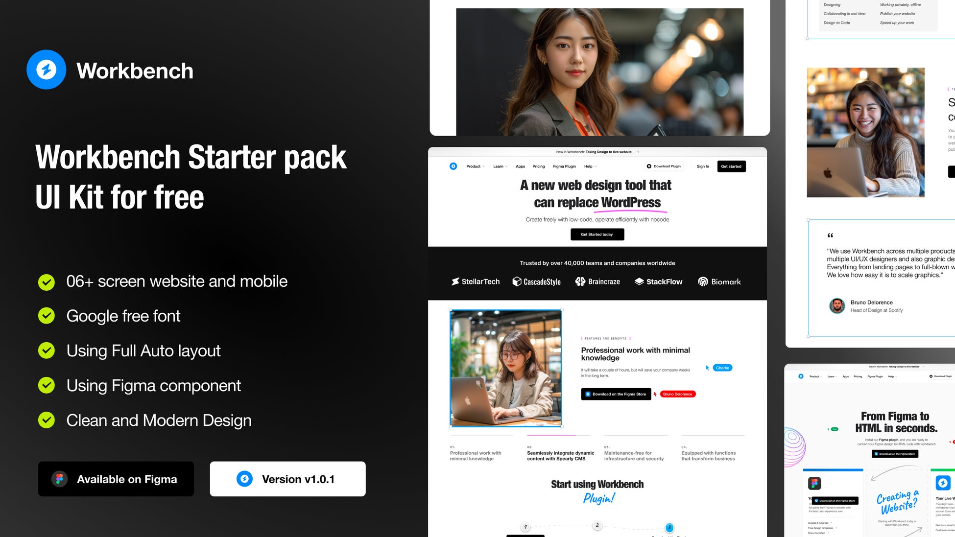 Figmaプラグインとして提供されるWorkbenchは、数クリックで簡単にインストール可能。直感的なインターフェイスで、すぐにデザインプロジェクトを開始できます。