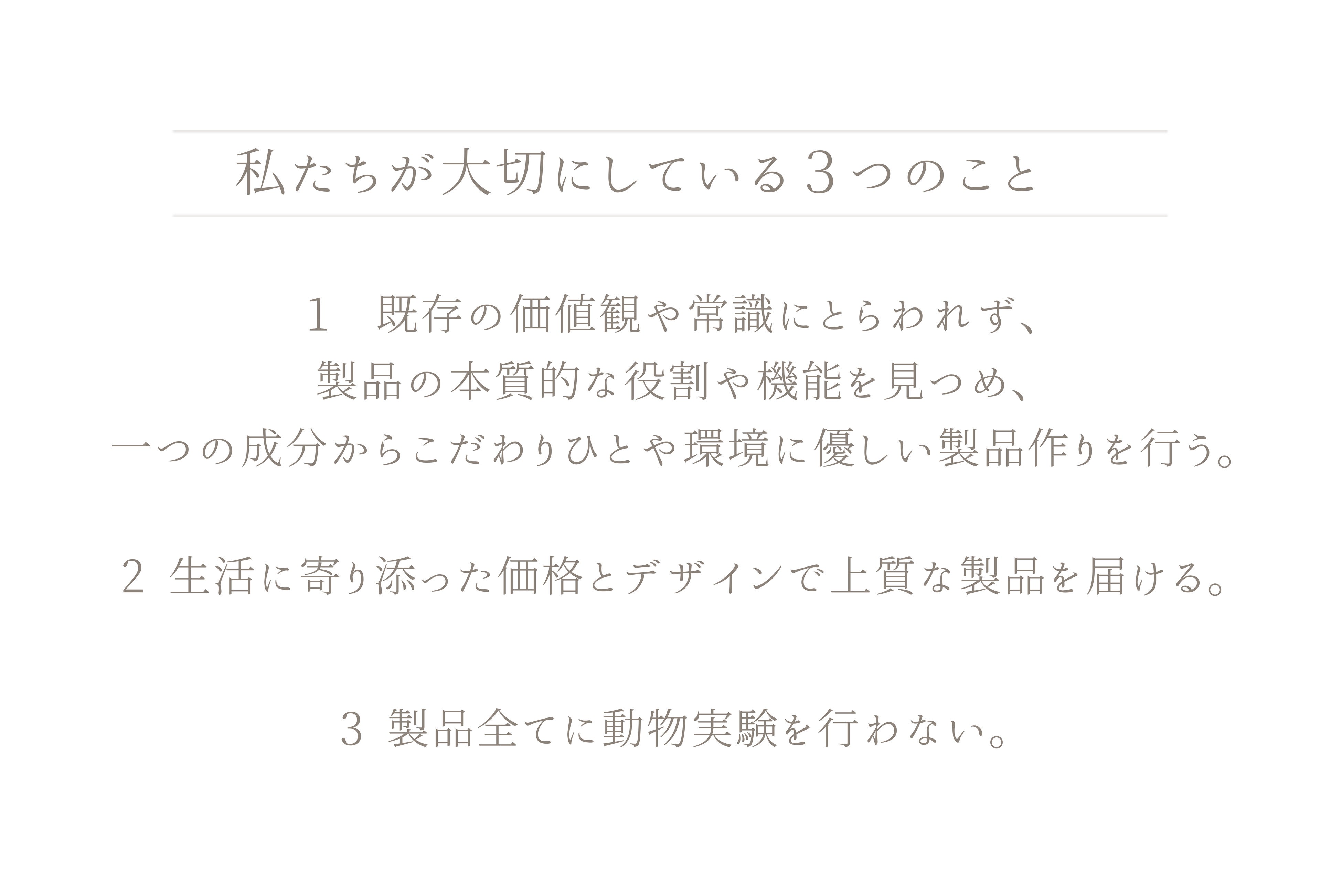 アルコールはもちろん、合成色素、合成香料、鉱物油は一切不使用。
