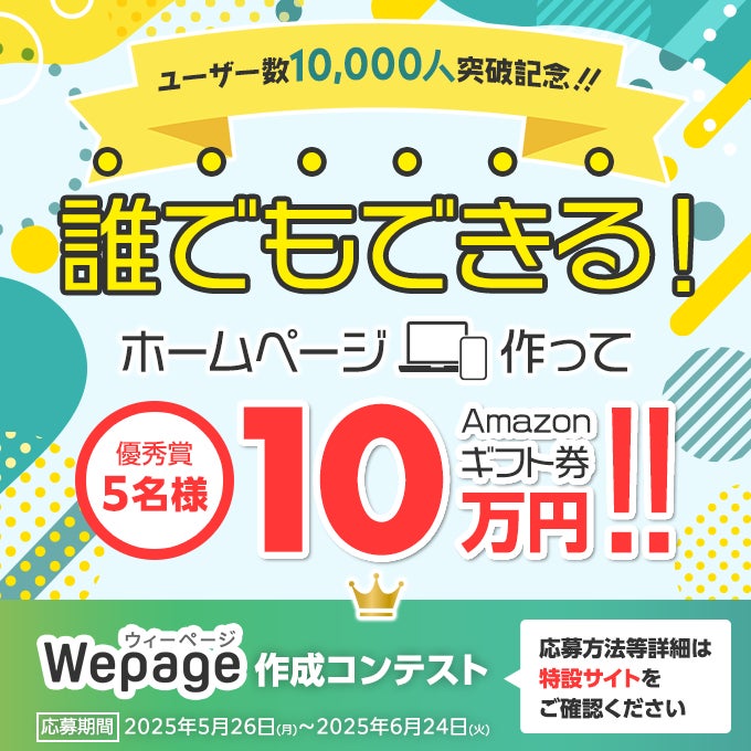 Wepageユーザー1万人突破記念!ホームぺージ作成コンテストを含むプレゼントキャンペーンを実施