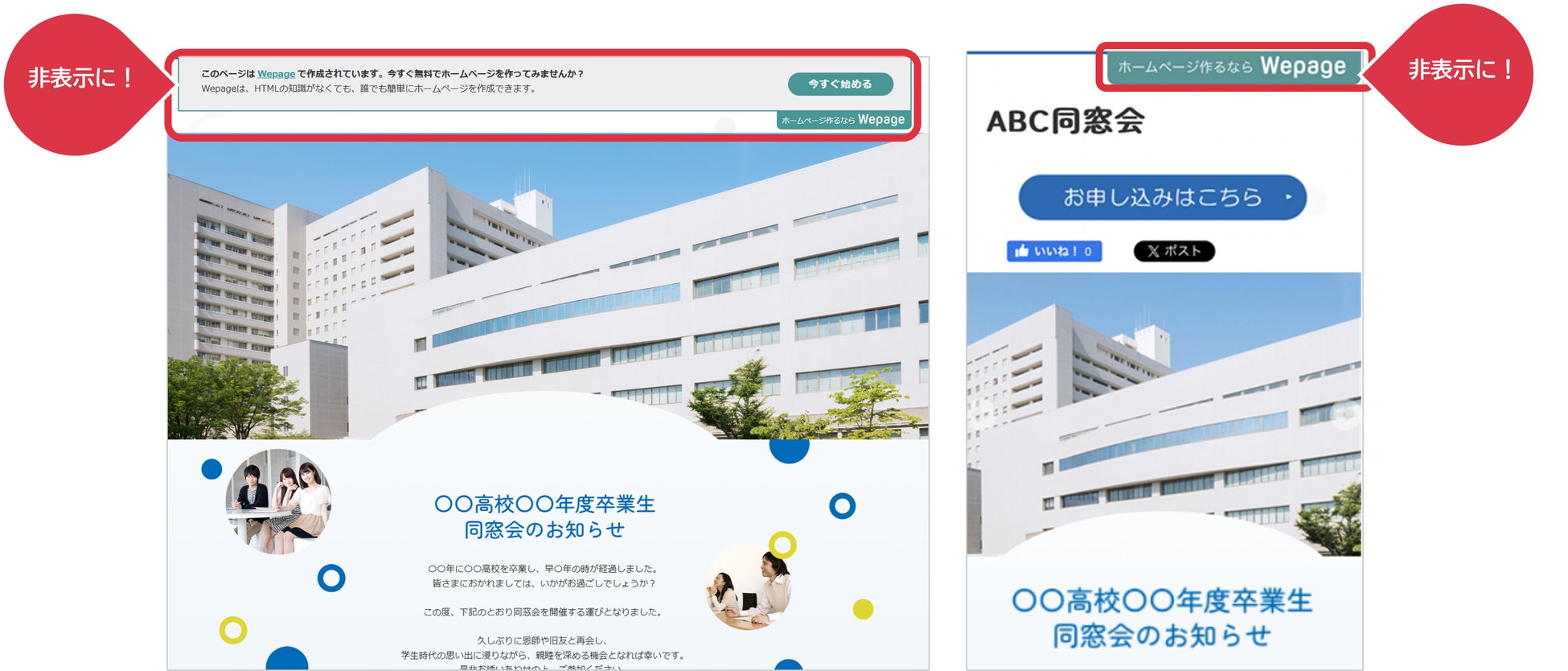ホームページに表示されているWepageのバナー広告が非表示に!