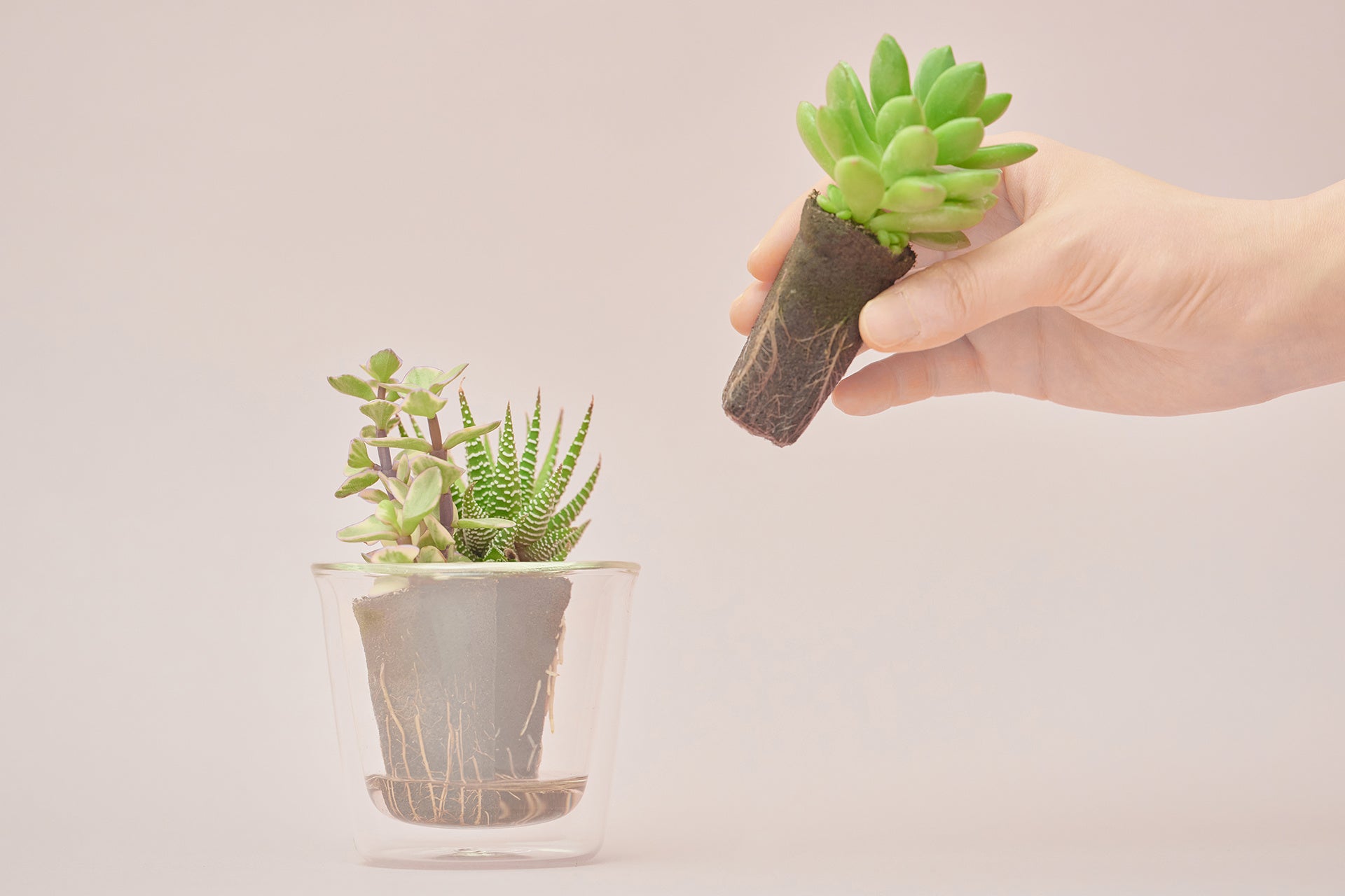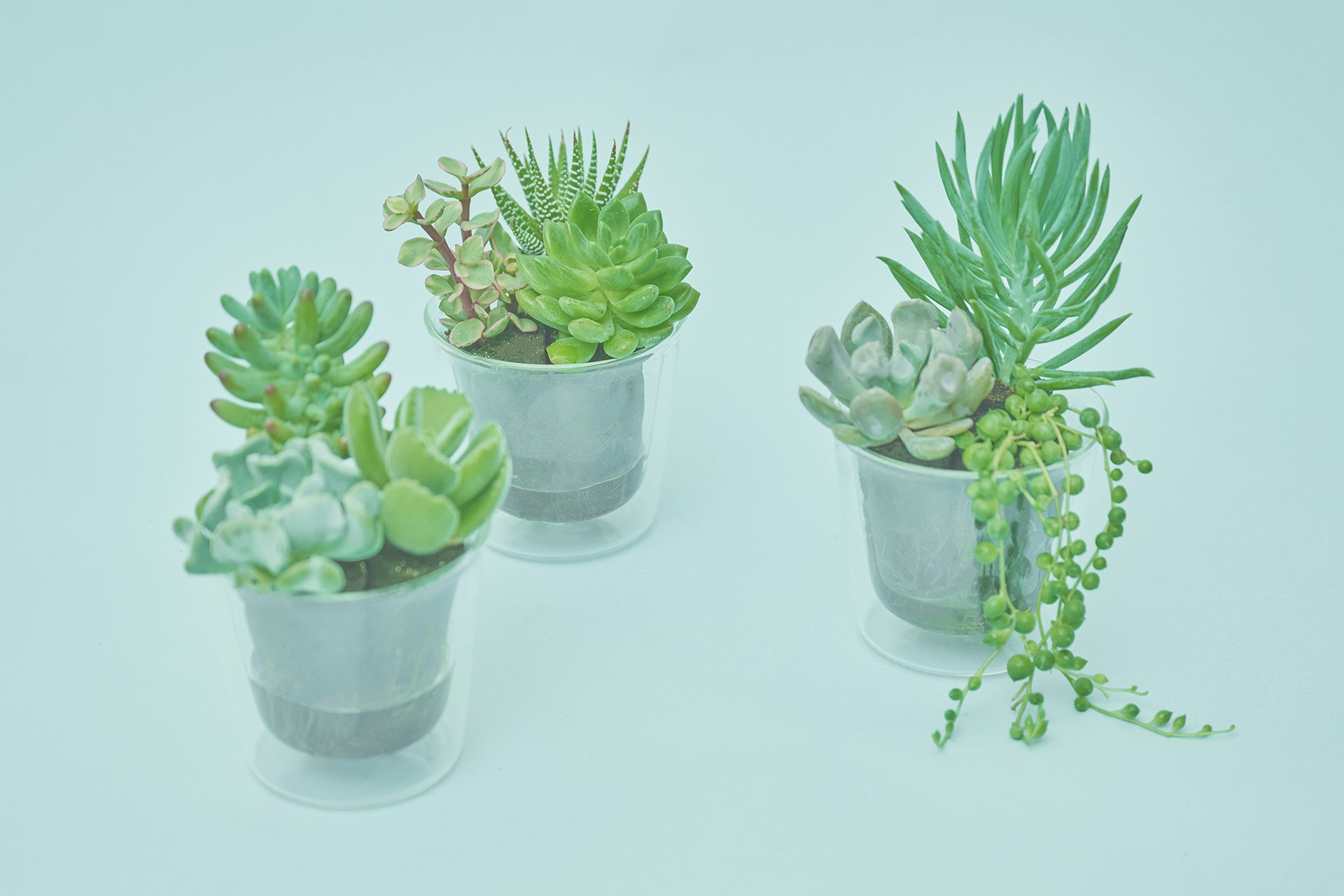 〜管理が簡単、衛生的。3種の組み合わせをダブルウォールグラスで楽しむ多肉植物〜