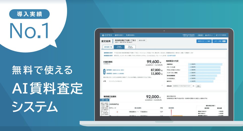 事業内容:AI賃料査定システム「スマサテ」(https://sumasate.jp/)
