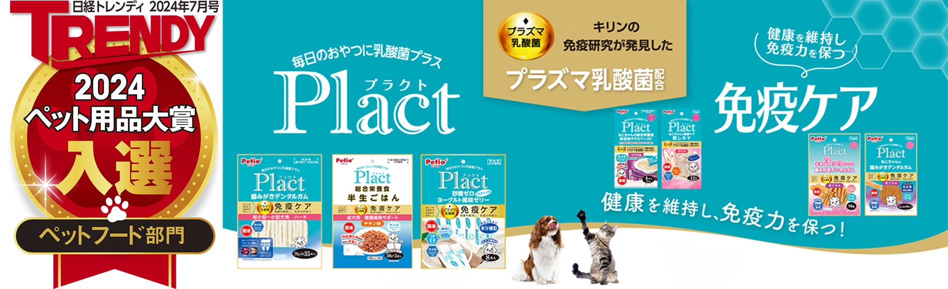 南方 健志)の免疫研究から生まれた独自の健康素材「プラズマ乳酸菌」を配合した犬猫用フードブランド「プラクト」。毎日摂取することで、ペットの健康を維持し免疫力を保つ商品として総合栄養食やデンタルガム、ゼリーなどカテゴリーをまたいで47種類もの商品をラインアップしております。