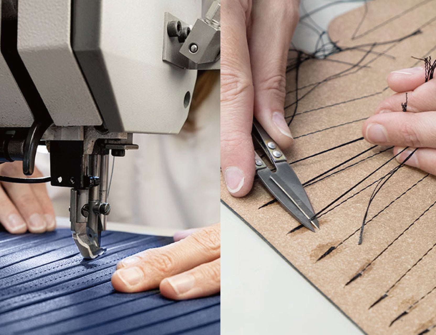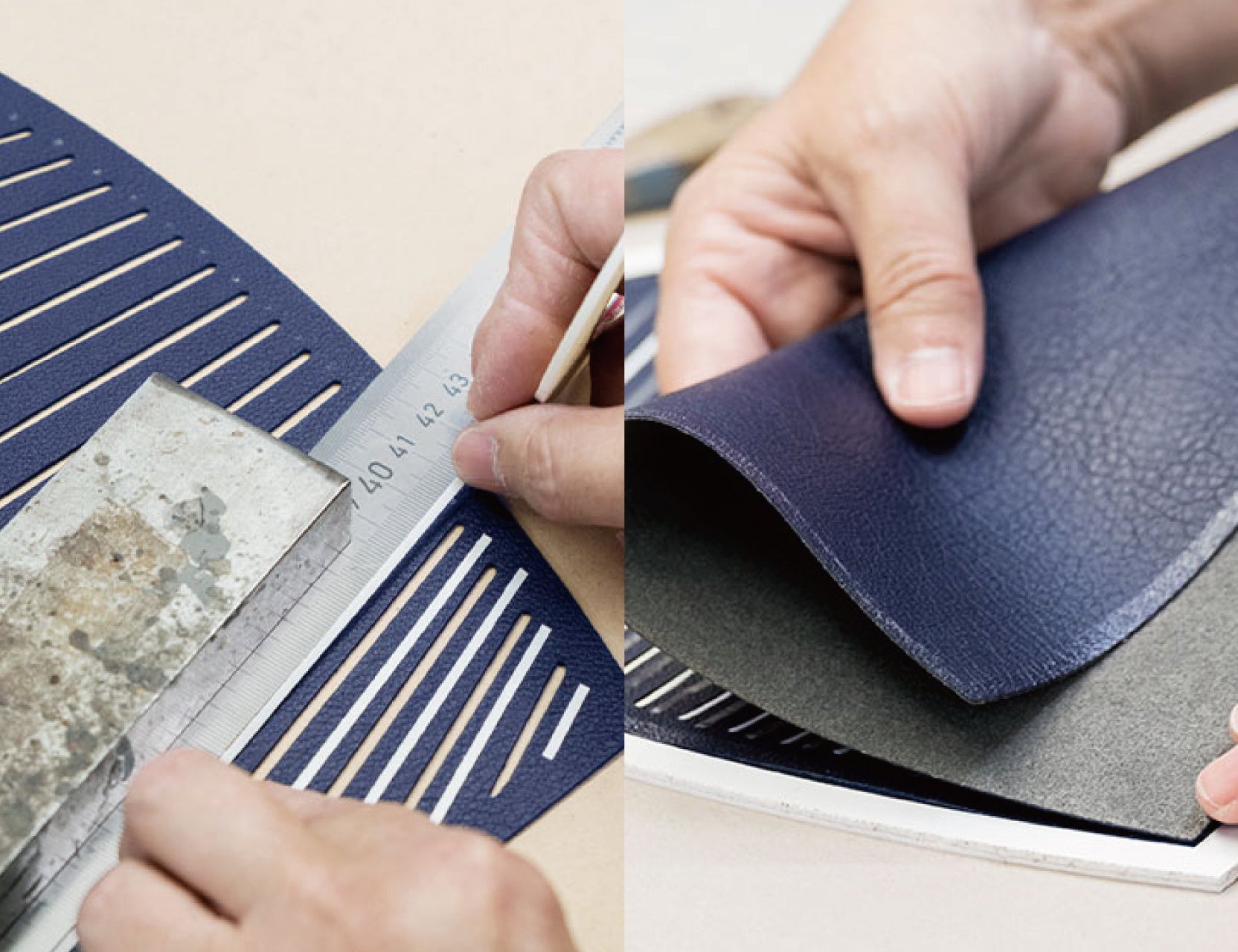 メゾンのマニファクチュールから、カーフを1本ずつ縫い付ける(プリーツのような加工)「プリセ」技法を生み出しました。「プリセ」は、フランス語で「プリーツ」を意味しています。