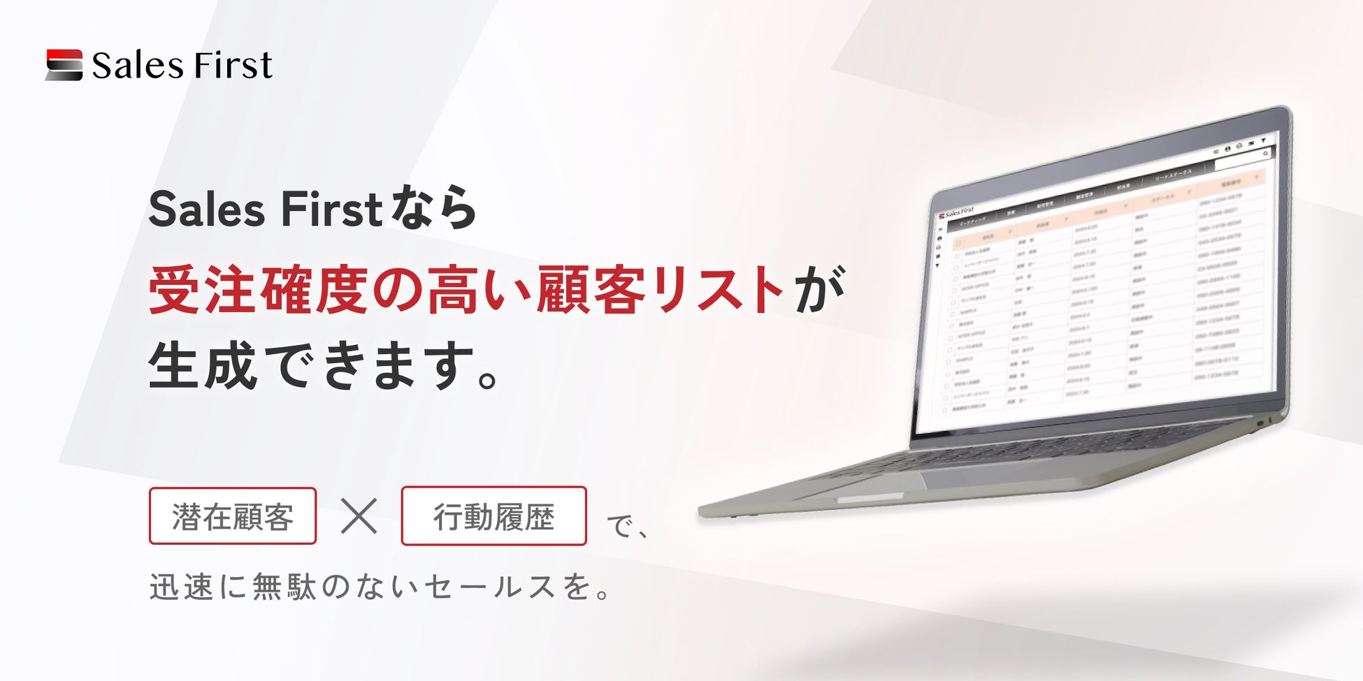 【法人営業の皆さまに朗報】顧客の行動履歴×AIで「売れる顧客リスト」を生成することに成功、商談・受注率を劇的に上げる営業DXソリューション「Sales First」を提供開始