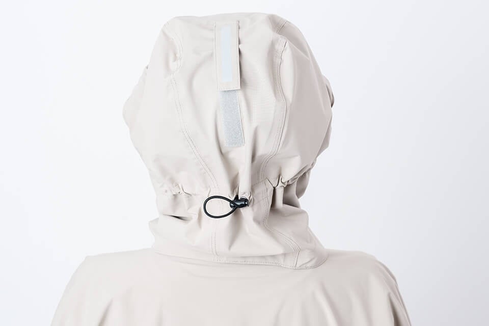 2023年4月より自転車のヘルメット着用が努力義務化となりました。今回のハイポンチョ、レインコートともに人口工学に基づいたパターンで設計・開発され、ドロ―コ―ドの調節によりヘルメットの有無に関わらずフィット感を維持できます。