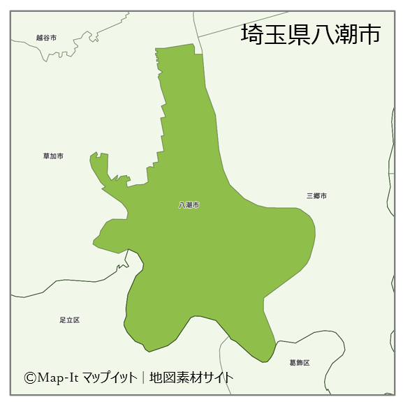 八潮市は、日本の埼玉県南部に位置する市で、東京都の東(葛飾区、足立区)に隣接、埼玉県草加市及び三郷市に挟まれたところにあります。