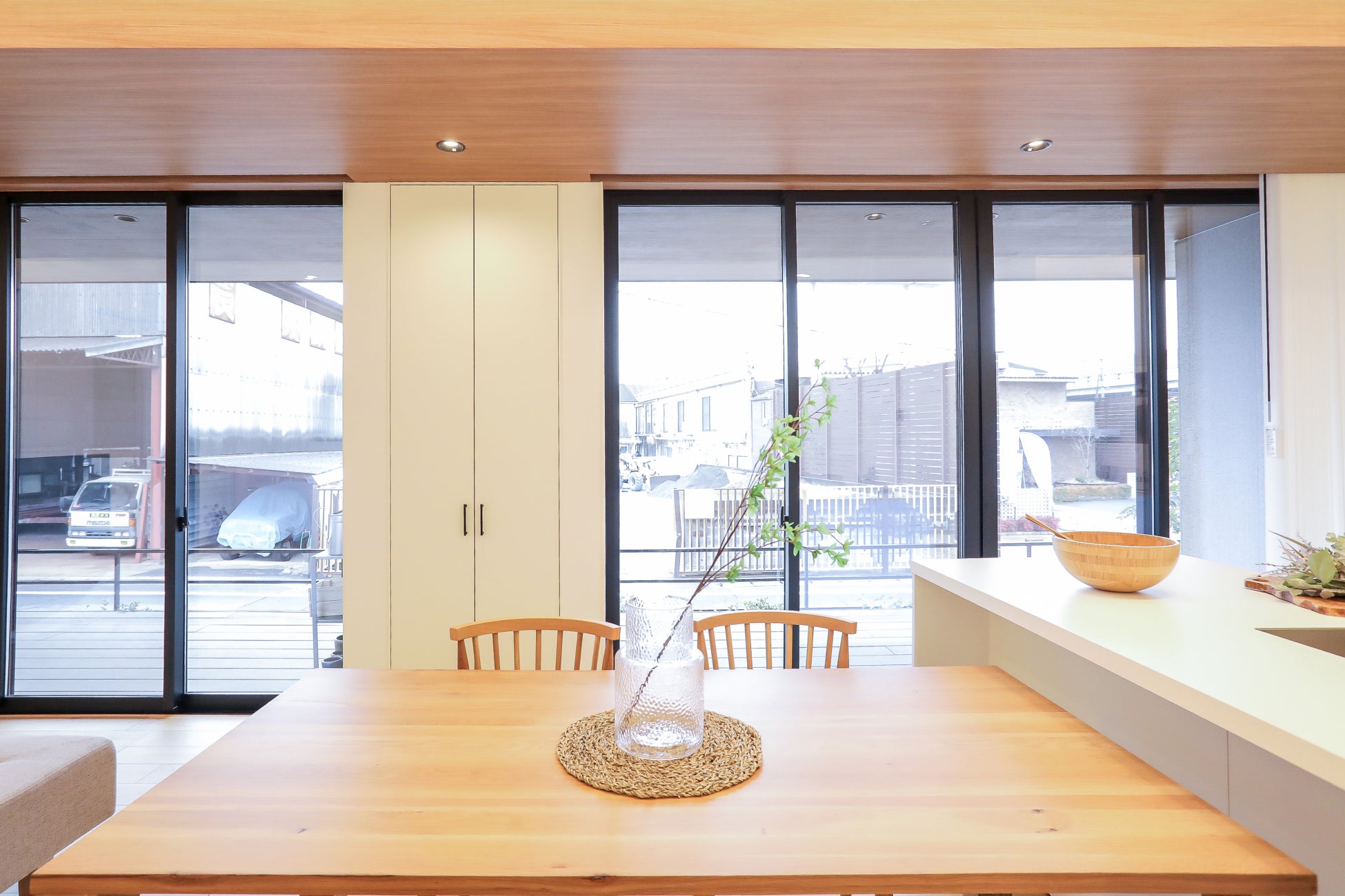 家族が集まるリビング、ダイニング、キッチンは、何よりも「心が落ち着く空間」であることを目指しました。